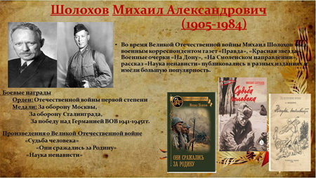Михаила Шолохова «Судьба человека», «Они сражались за Родину»;