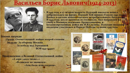 Бориса Васильева «Офицеры», «А зори здесь тихие», «В списках не